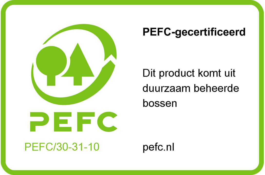 - PEFC-gecertificeerd (zie voorbeelden hiernaast)