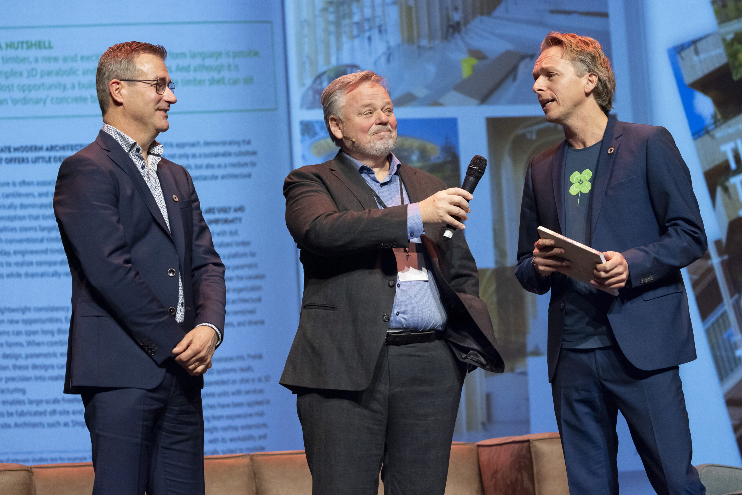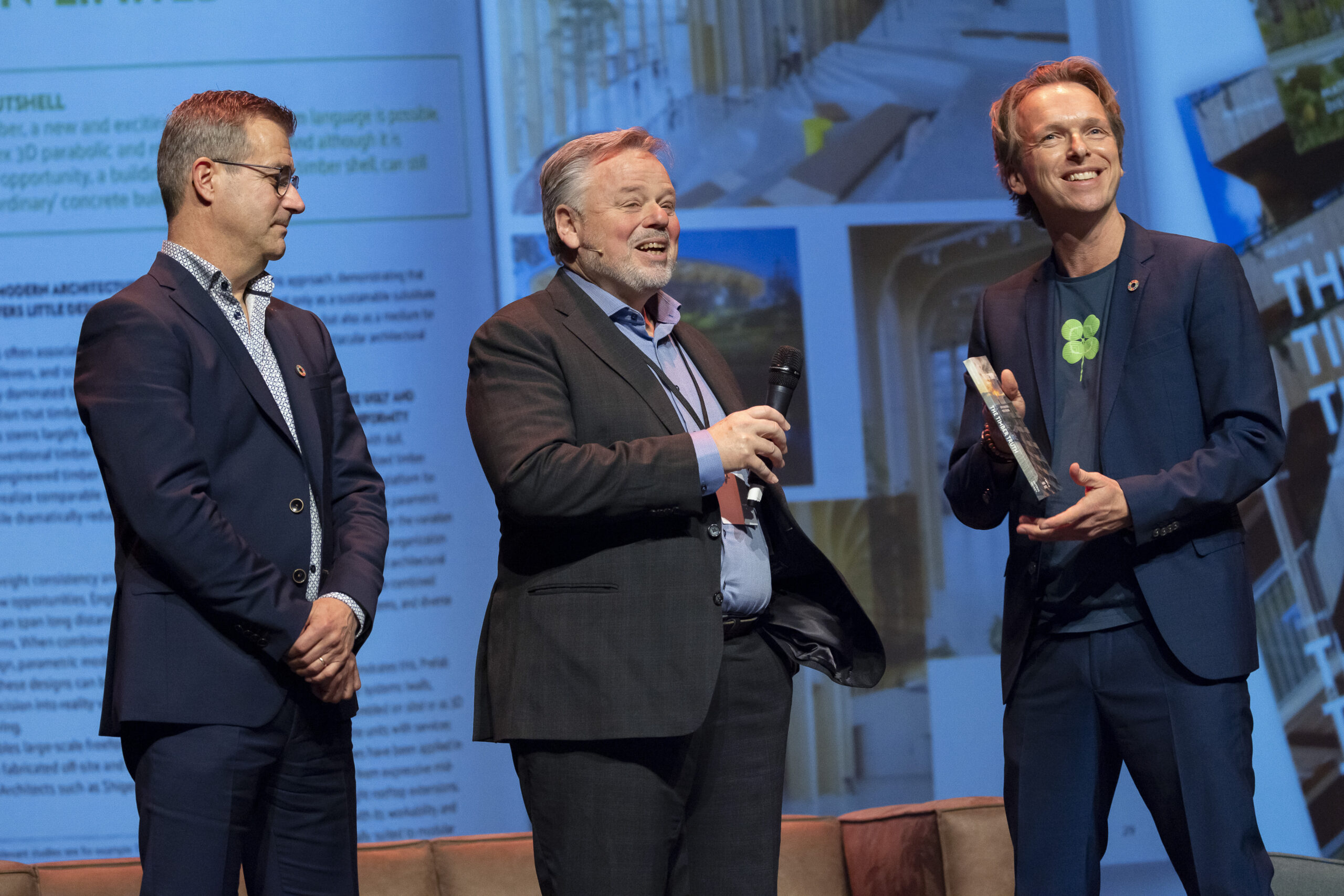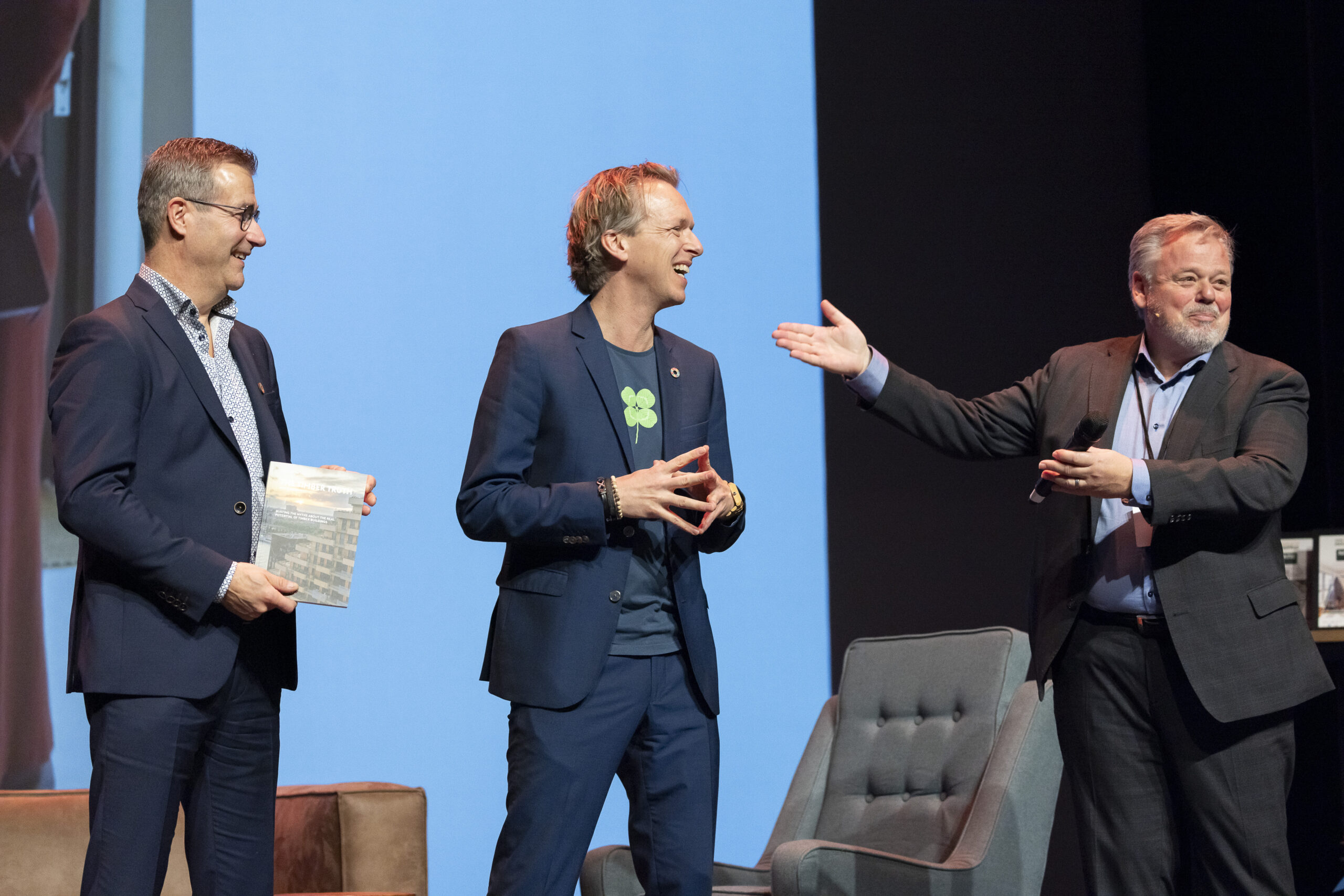 Van links naar rechts: Gert-Jan Nabuurs (Wageningen Universiteit), Jan-Maurits Schouten (Houtblad) en Pablo van der Lugt
